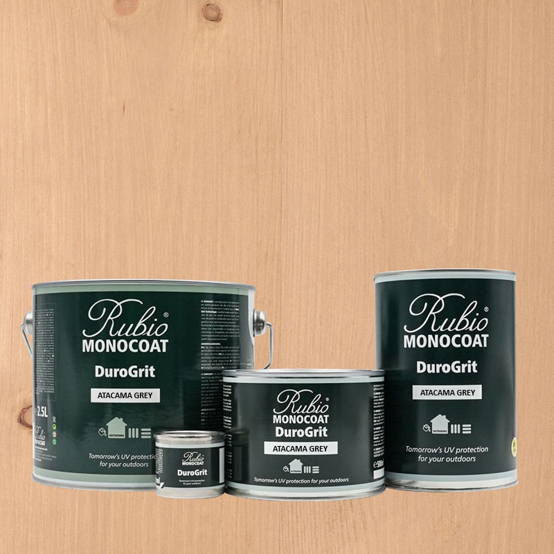 Rubio Monocoat DuroGrit Atacama Grey is ideaal voor buitenprojecten met hout waarbij uv-bescherming en duurzaamheid van cruciaal belang zijn. Het product is verkrijgbaar in 14 kleuren en is geschikt voor terrassen, tuinmeubelen, gevelbekledingen, enz. Dankzij de 0% VOC’s is het ook ecologisch en veilig in gebruik.